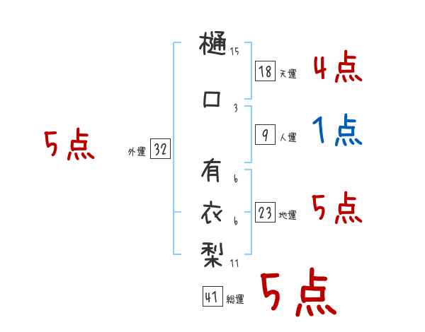 樋口有衣梨さんの画数の鑑定結果