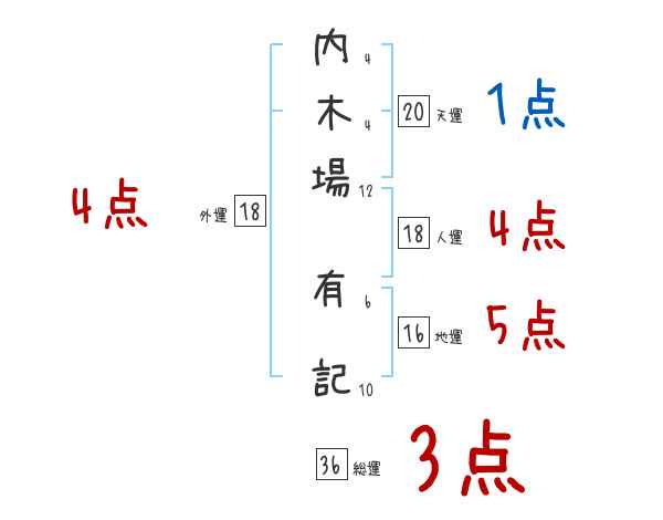 外運![]() | 内木場有記さんの外運は18画の4つ星!情熱的で剛気。忍耐力があり信頼される。 生活面を象徴する運勢です。外部から受ける影響力を表し、結婚運、家庭運や職場、環境への順応性を表します。 |
