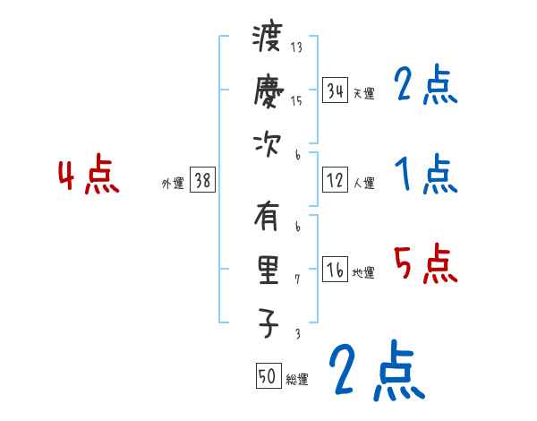 渡慶次有里子さんの画数の鑑定結果