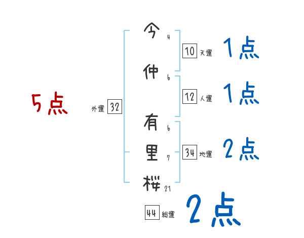 今仲有里桜さんの画数の鑑定結果