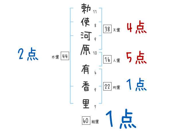 人運![]() | 勅使河原有香里さんの人運は16画の5つ星!人望が厚く大きく発展する。逆転成功が見える。 性格や才能などを表す2番目に重要な運勢です。人間関係や協調性、社会的な成功に影響します。主に20歳から50歳ぐらいまでの中年期の運勢を表します。 |