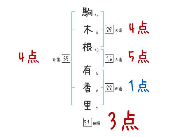 駒木根有香里さんの画数の鑑定結果