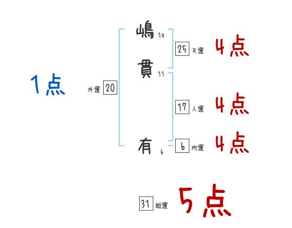 嶋貫有さんの画数の鑑定結果