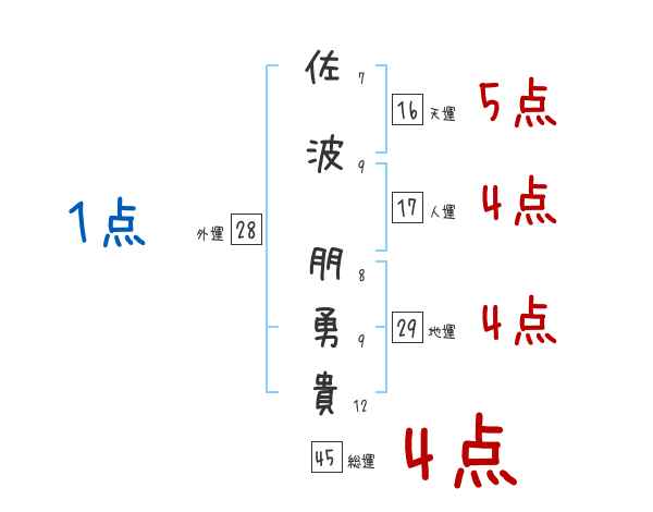外運![]() | 佐波朋勇貴さんの外運は28画の1つ星!家庭環境に注意。スポーツで活躍できる能力があるかも。 生活面を象徴する運勢です。外部から受ける影響力を表し、結婚運、家庭運や職場、環境への順応性を表します。 |