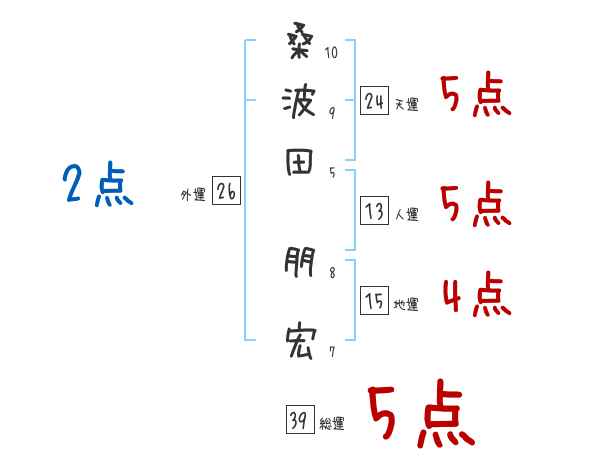 桑波田朋宏さんの画数の鑑定結果