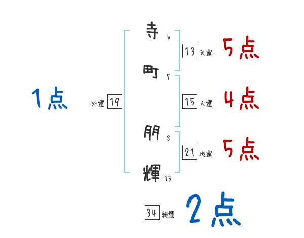 寺町朋輝さんの画数の鑑定結果