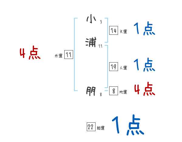 総運![]() | 小浦朋さんの総運は22画の1つ星!努力することが苦手ないっぽう手先が器用。芸術性にも優れる。 あなたの人生を表す1番重要な運勢です。生涯を通じて影響する総合運となり、主に50歳以降の晩年期に影響を及ぼします。 |