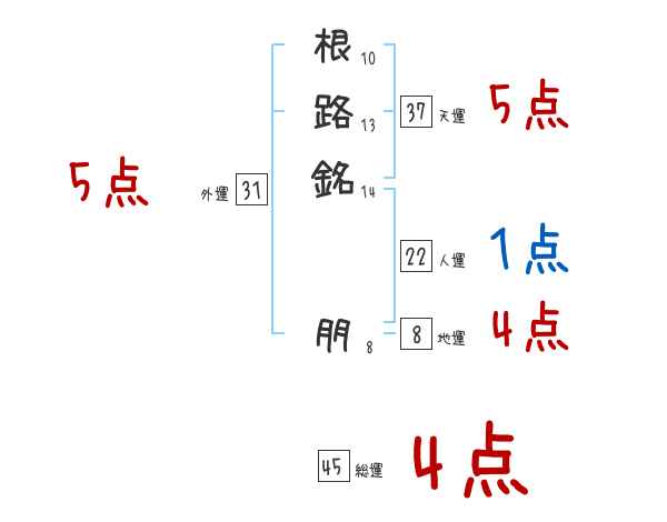 根路銘朋さんの画数の鑑定結果