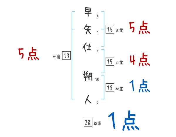 天運![]() | 早矢仕朔人さんの天運は16画の5つ星!人望が厚く大きく発展する。逆転成功が見える。 家系が持つ宿命的な運勢を表します。祖先から受け継いだ苗字ですので自分の力が及びません。家柄を象徴します。 |