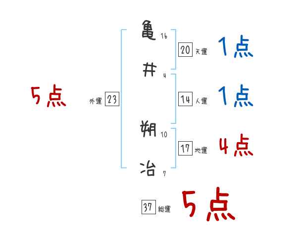 亀井朔冶さんの画数の鑑定結果