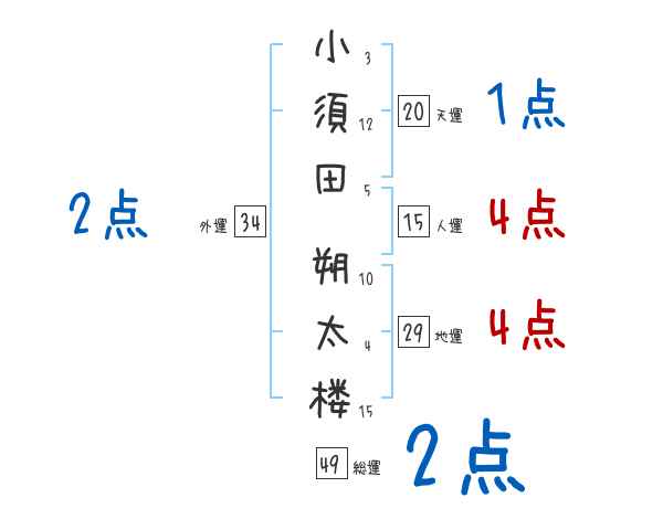 小須田朔太楼さんの画数の鑑定結果