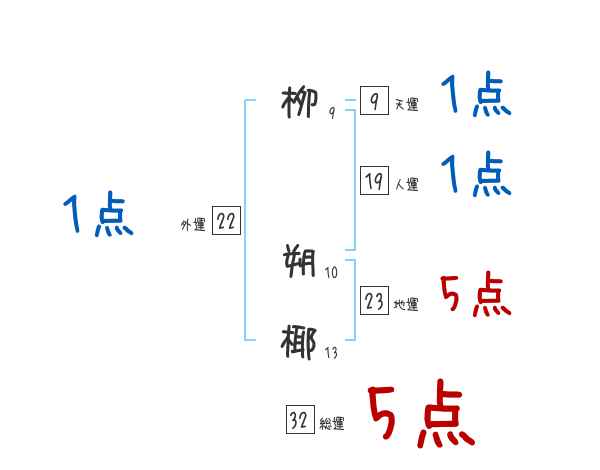 栁朔椰さんの画数の鑑定結果
