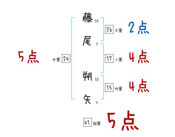 藤尾朔矢さんの画数の鑑定結果