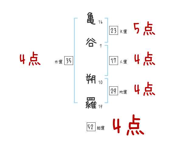 亀谷朔羅さんの画数の鑑定結果