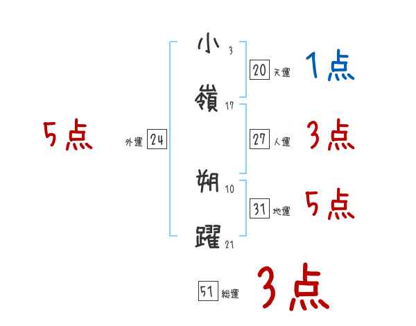 小嶺朔躍さんの画数の鑑定結果