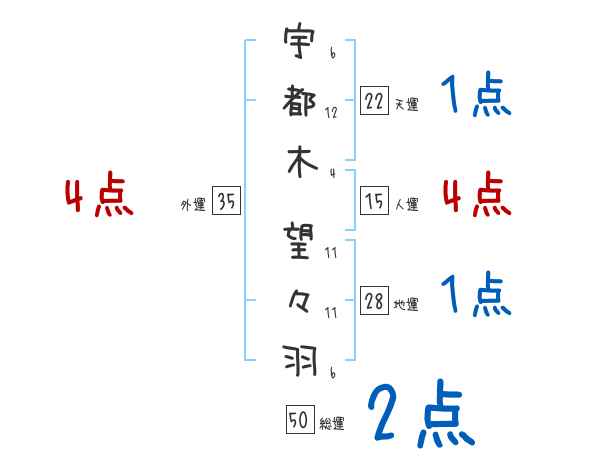 宇都木望々羽さんの画数の鑑定結果
