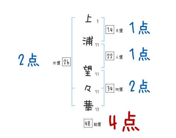 天運![]() | 上浦望々華さんの天運は14画の1つ星!人に対して優しいがストレスを溜め込みがち。人間関係のトラブルを避けるよう気をつけましょう。 家系が持つ宿命的な運勢を表します。祖先から受け継いだ苗字ですので自分の力が及びません。家柄を象徴します。 |
