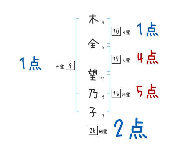 総運![]() | 木全望乃子さんの総運は26画の2つ星!波瀾万丈かも。信頼できる人を大事にしましょう。 あなたの人生を表す1番重要な運勢です。生涯を通じて影響する総合運となり、主に50歳以降の晩年期に影響を及ぼします。 |