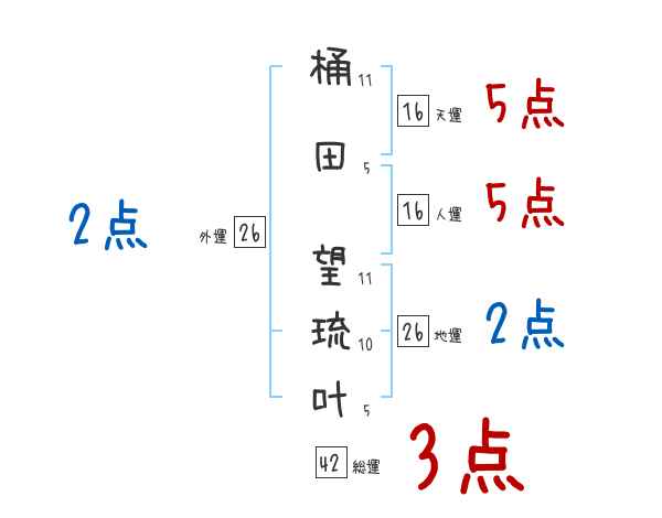 桶田望琉叶さんの画数の鑑定結果
