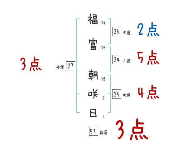 福富朝咲日さんの画数の鑑定結果