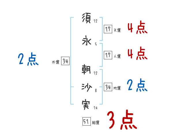 外運![]() | 須永朝沙実さんの外運は34画の2つ星!独創性に優れるが、自尊心が強く災難に注意しましょう。 生活面を象徴する運勢です。外部から受ける影響力を表し、結婚運、家庭運や職場、環境への順応性を表します。 |