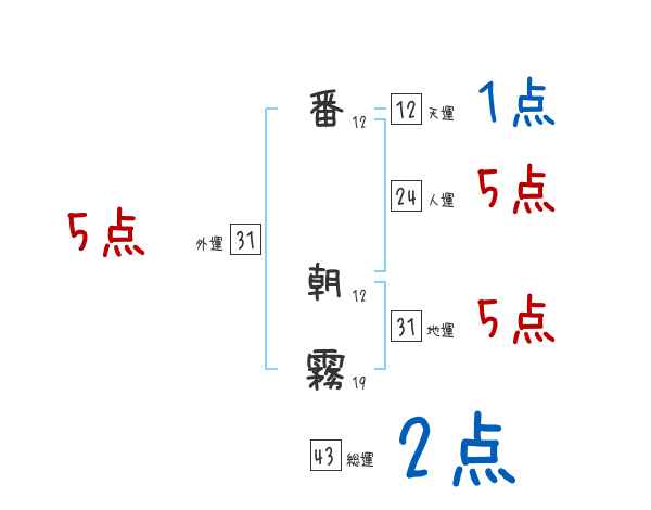 番朝霧さんの画数の鑑定結果