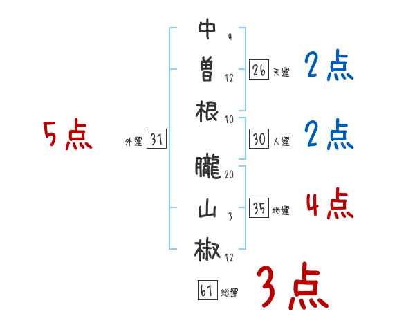 中曽根朧山椒さんの画数の鑑定結果