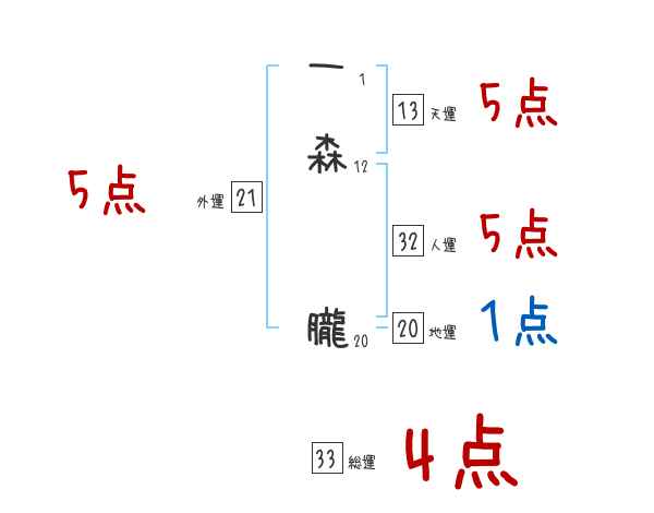 一森朧さんの画数の鑑定結果