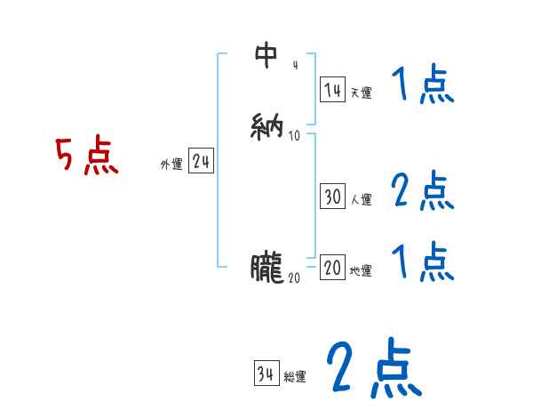 外運![]() | 中納朧さんの外運は24画の5つ星!家庭運が良く順調な人生。金運にも恵まれる。 生活面を象徴する運勢です。外部から受ける影響力を表し、結婚運、家庭運や職場、環境への順応性を表します。 |