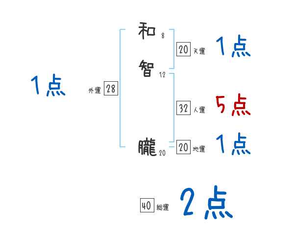 外運![]() | 和智朧さんの外運は28画の1つ星!家庭環境に注意。スポーツで活躍できる能力があるかも。 生活面を象徴する運勢です。外部から受ける影響力を表し、結婚運、家庭運や職場、環境への順応性を表します。 |