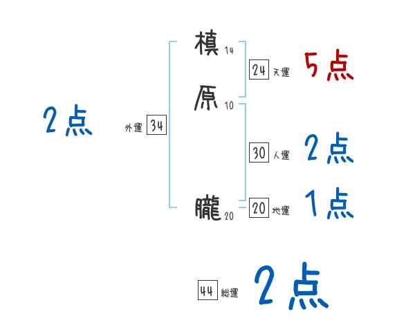 天運![]() | 槙原朧さんの天運は24画の5つ星!家庭運が良く順調な人生。金運にも恵まれる。 家系が持つ宿命的な運勢を表します。祖先から受け継いだ苗字ですので自分の力が及びません。家柄を象徴します。 |