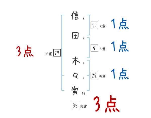 信田木々実さんの画数の鑑定結果