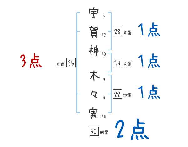 宇賀神木々実さんの画数の鑑定結果