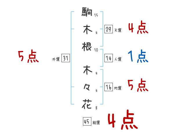 駒木根木々花さんの画数の鑑定結果