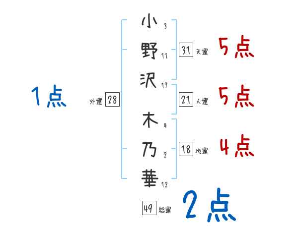 外運![]() | 小野沢木乃華さんの外運は28画の1つ星!家庭環境に注意。スポーツで活躍できる能力があるかも。 生活面を象徴する運勢です。外部から受ける影響力を表し、結婚運、家庭運や職場、環境への順応性を表します。 |