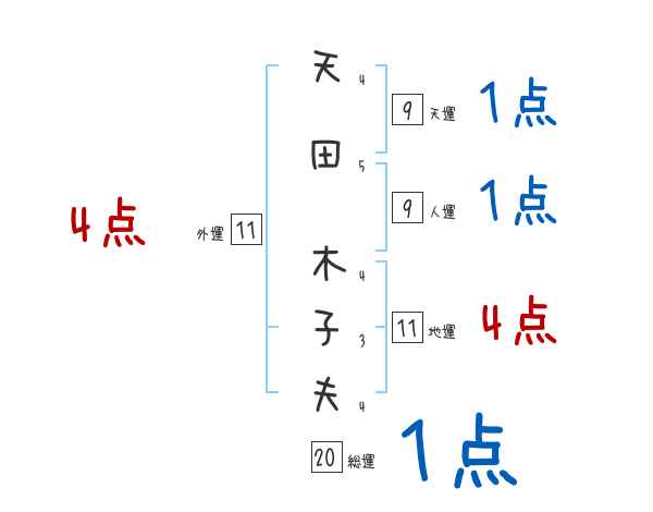 天田木子夫さんの画数の鑑定結果