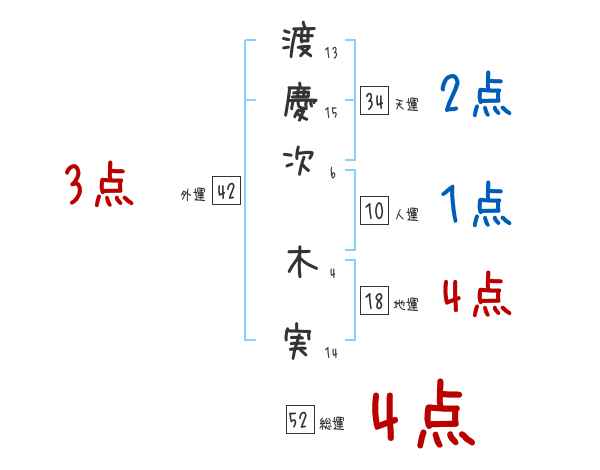 渡慶次木実さんの画数の鑑定結果