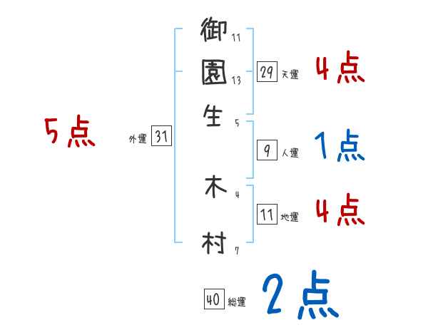 御園生木村さんの画数の鑑定結果