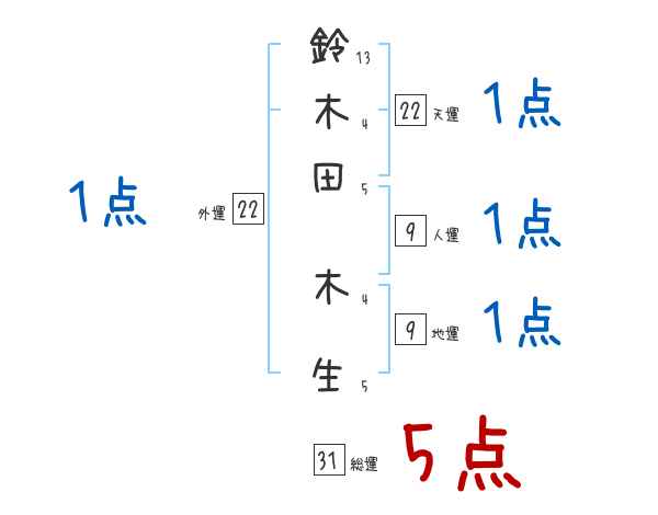 総運![]() | 鈴木田木生さんの総運は31画の5つ星!社交性があり判断力に優れる。順風満帆な人生で円満な生活。 あなたの人生を表す1番重要な運勢です。生涯を通じて影響する総合運となり、主に50歳以降の晩年期に影響を及ぼします。 |