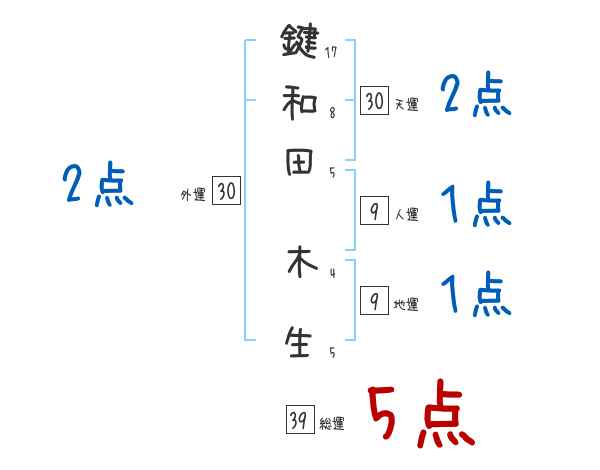 天運![]() | 鍵和田木生さんの天運は30画の2つ星!浮き沈みの激しさに注意しましょう。 家系が持つ宿命的な運勢を表します。祖先から受け継いだ苗字ですので自分の力が及びません。家柄を象徴します。 |