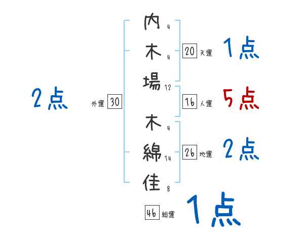 内木場木綿佳さんの画数の鑑定結果