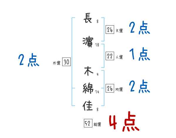 外運![]() | 長濵木綿佳さんの外運は30画の2つ星!浮き沈みの激しさに注意しましょう。 生活面を象徴する運勢です。外部から受ける影響力を表し、結婚運、家庭運や職場、環境への順応性を表します。 |