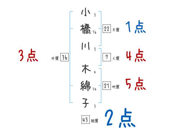 小橋川木綿子さんの画数の鑑定結果