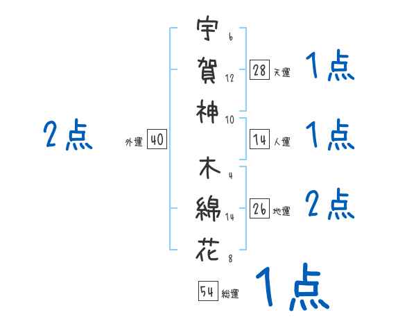宇賀神木綿花さんの画数の鑑定結果