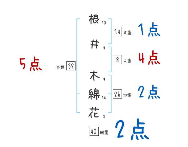 外運![]() | 根井木綿花さんの外運は32画の5つ星!柔軟性があり成功する。チャンスが多く金運が良い。 生活面を象徴する運勢です。外部から受ける影響力を表し、結婚運、家庭運や職場、環境への順応性を表します。 |
