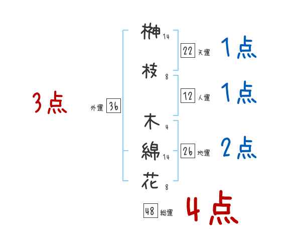外運![]() | 榊枝木綿花さんの外運は36画の3つ星!先見性が豊かです。多少神経質で苦労することも。 生活面を象徴する運勢です。外部から受ける影響力を表し、結婚運、家庭運や職場、環境への順応性を表します。 |