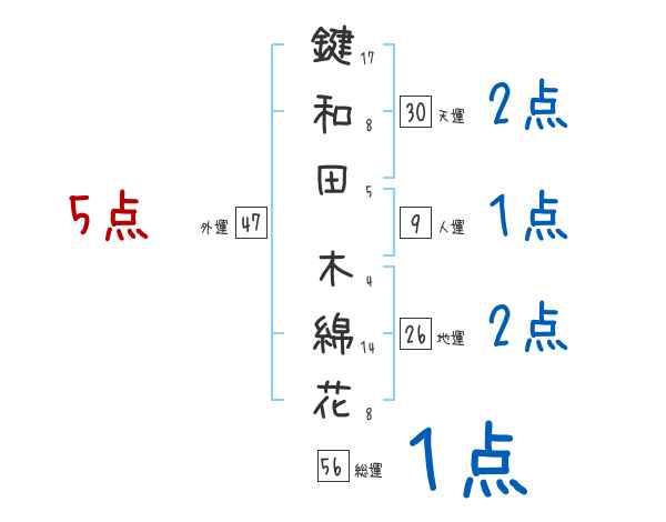 鍵和田木綿花さんの画数の鑑定結果
