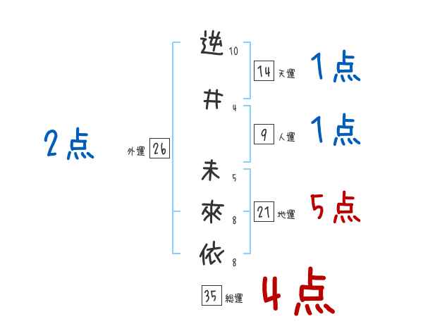 天運![]() | 逆井未來依さんの天運は14画の1つ星!人に対して優しいがストレスを溜め込みがち。人間関係のトラブルを避けるよう気をつけましょう。 家系が持つ宿命的な運勢を表します。祖先から受け継いだ苗字ですので自分の力が及びません。家柄を象徴します。 |