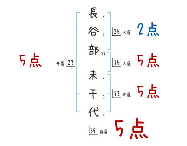 長谷部未千代さんの画数の鑑定結果