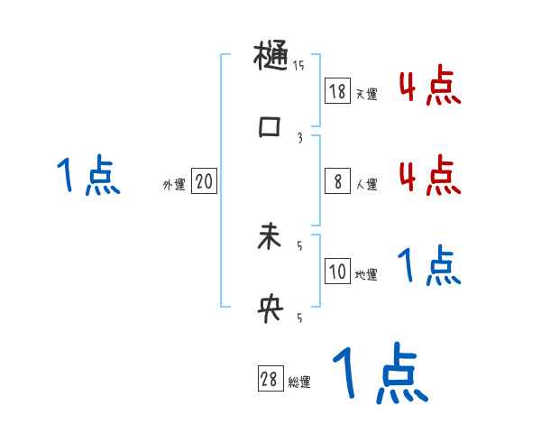 樋口未央さんの画数の鑑定結果